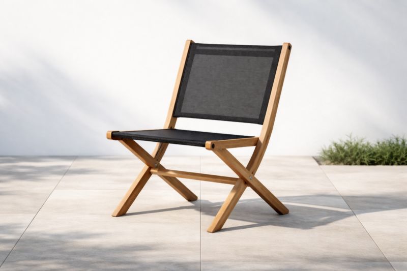 Chaise pliable en teck et tissu noir pour extérieur
