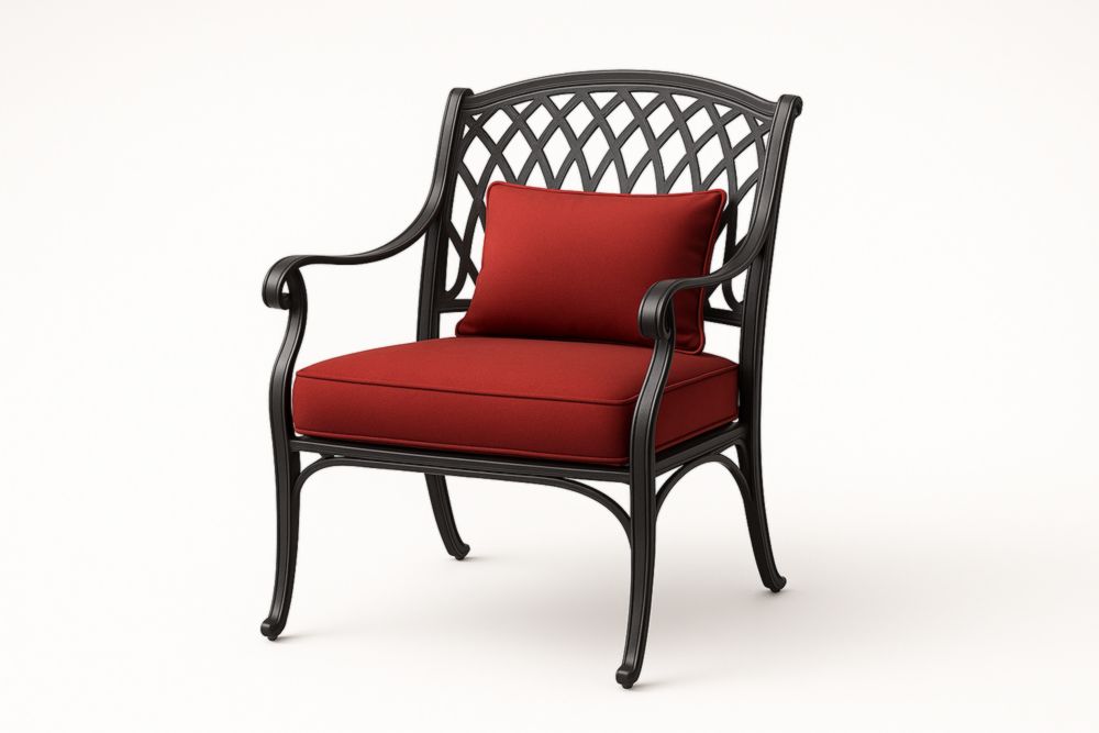 Fauteuil en Aluminium Noir avec Coussin Rouge